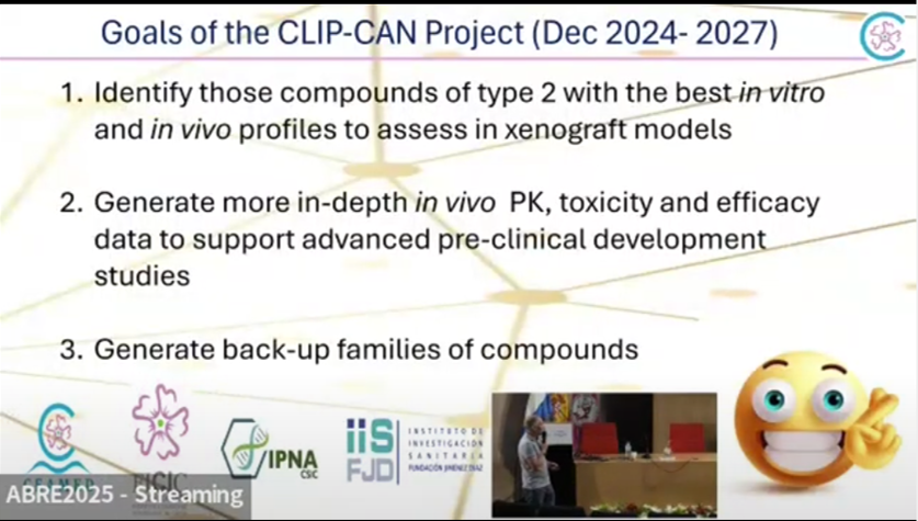 The presentation covered the history behind the discovery of HsClpP agonists as new potential anticancer agents, and how the CLIP-CAN project will seek to develop new and improved HsClpP agonists, to treat various resistant cancers.